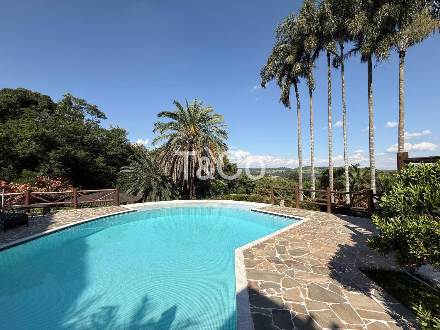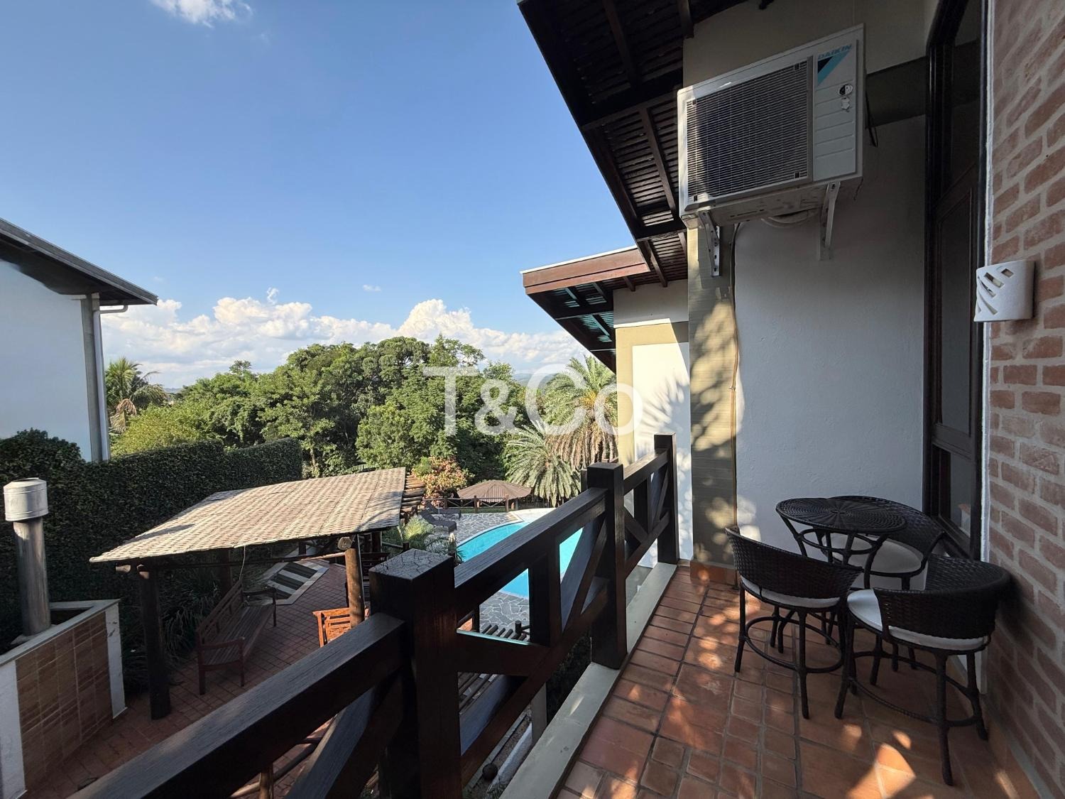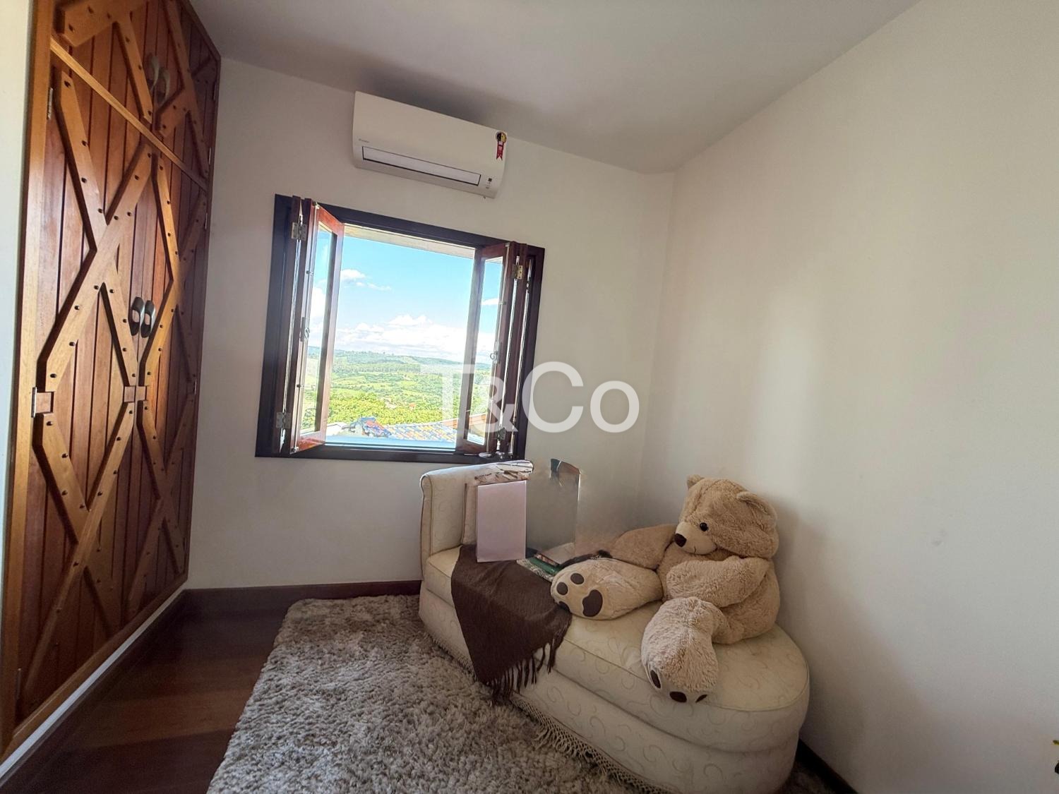 O imóvel oferece conforto e estrutura com sala de TV com lareira, adega e ar-condicionado em todos os ambientes.