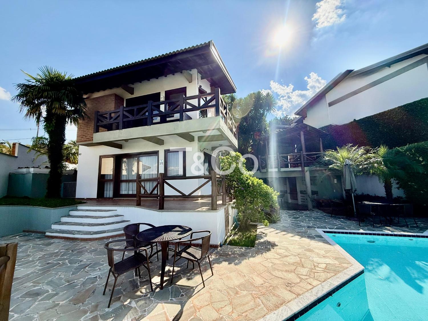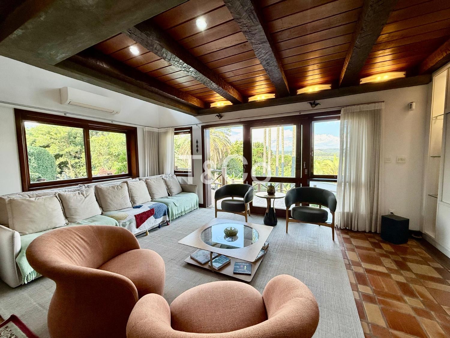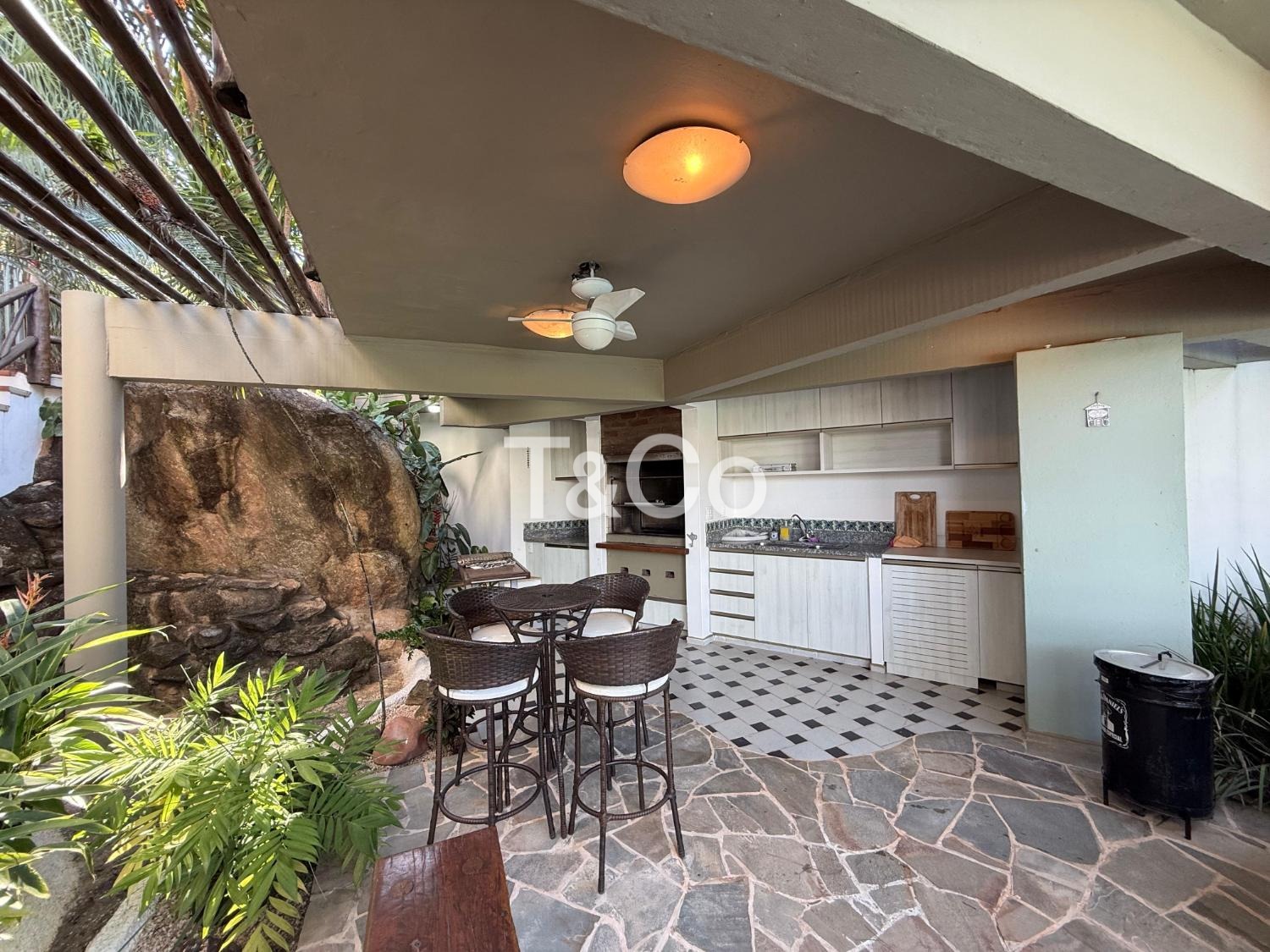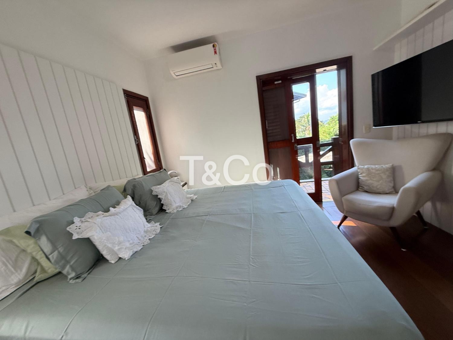 O imóvel oferece conforto e estrutura com sala de TV com lareira, adega e ar-condicionado em todos os ambientes.
