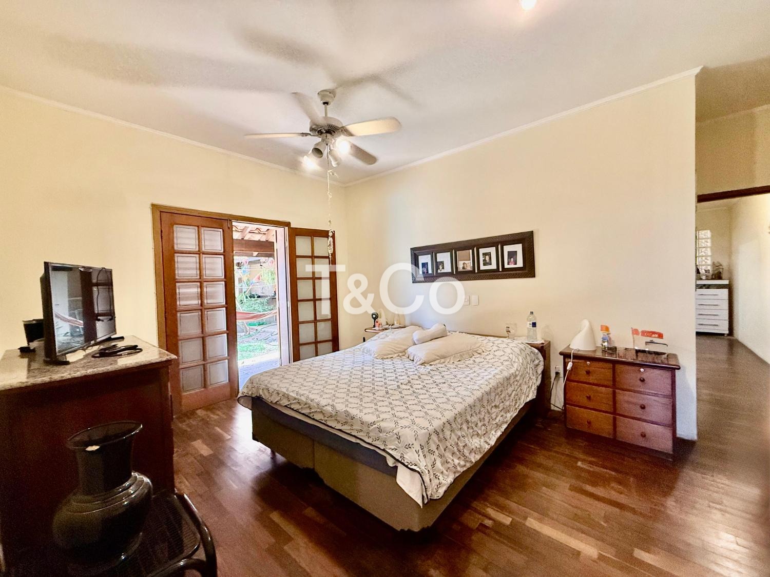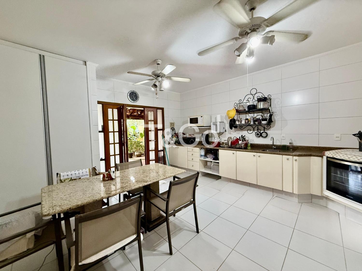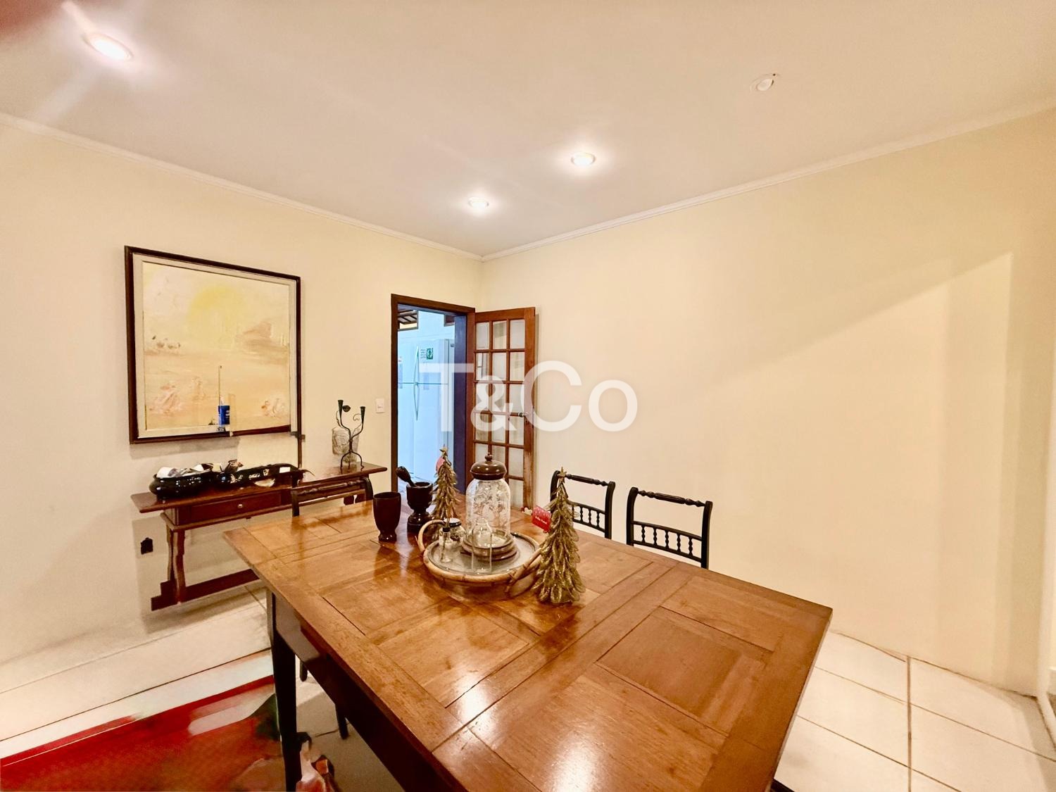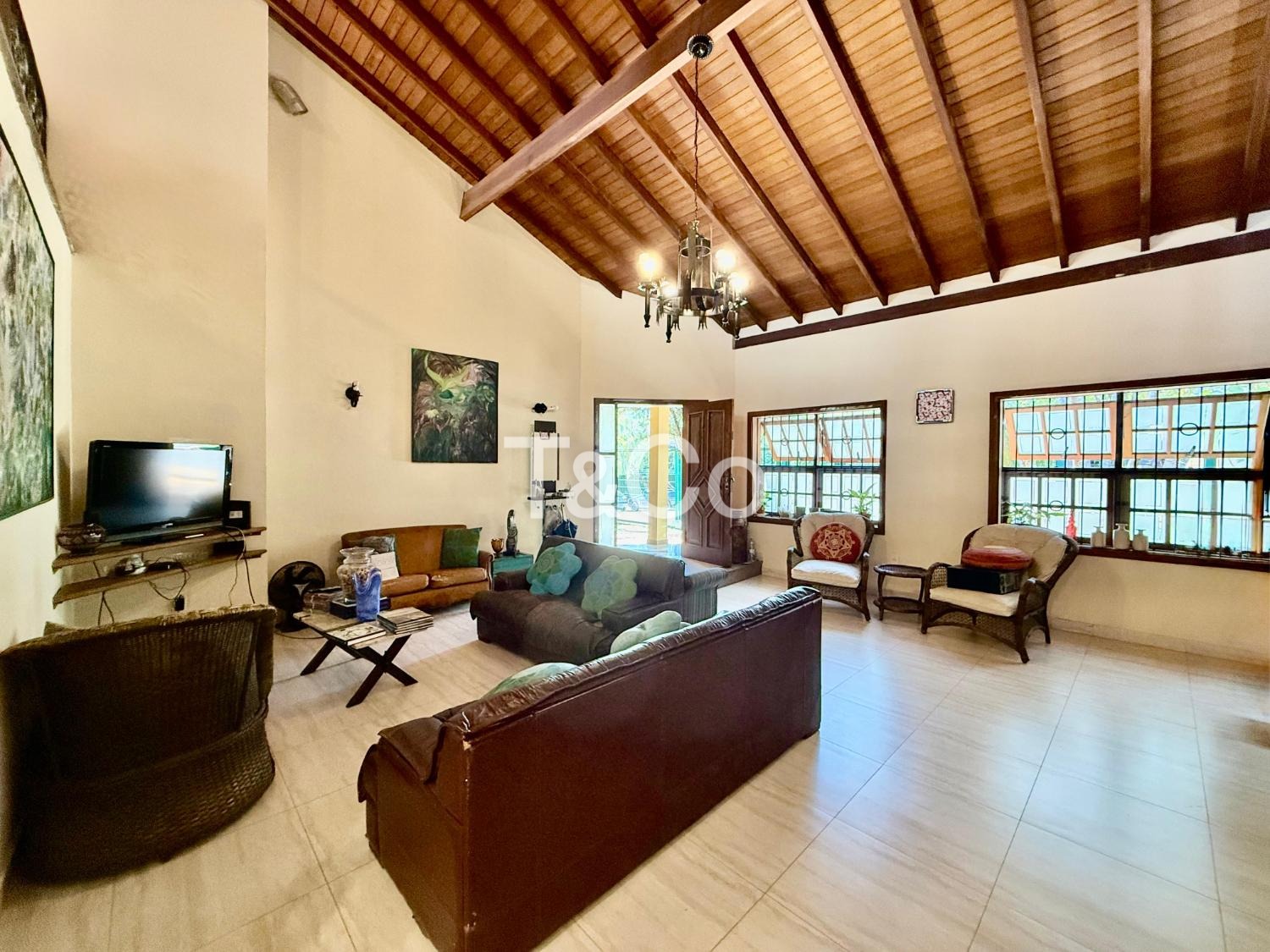 No piso térreo, são 2 suítes, sendo 1 suíte master. Sala com pé-direito alto para 3 ambientes: jantar, estar e TV. Lavabo. Cozinha ampla. Varanda com churrasqueira. Piscina. 2 depósitos.