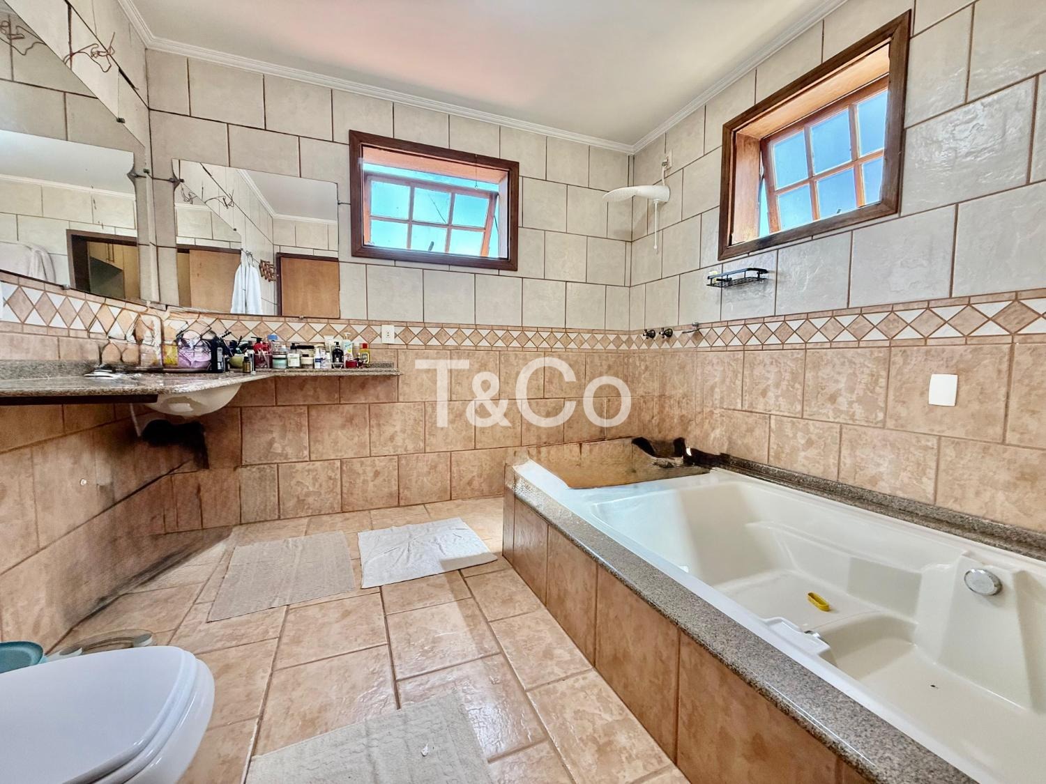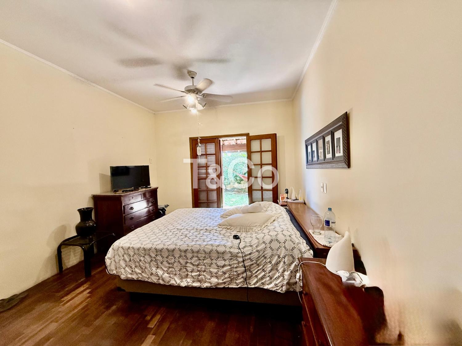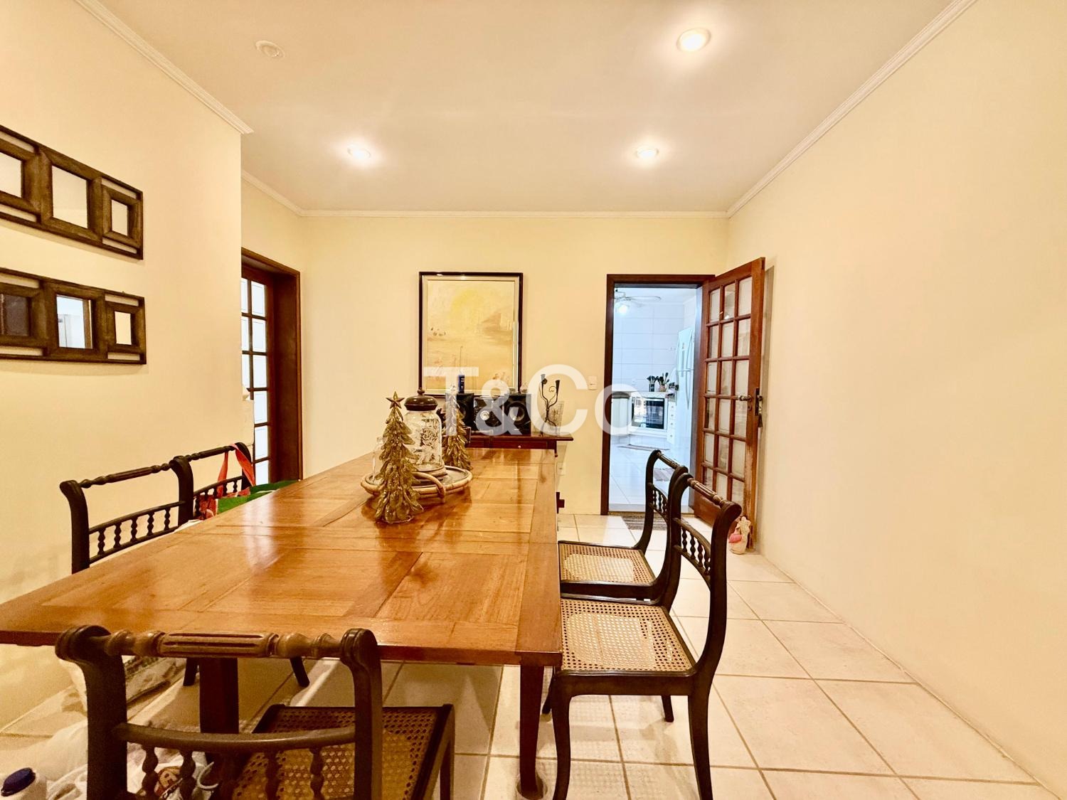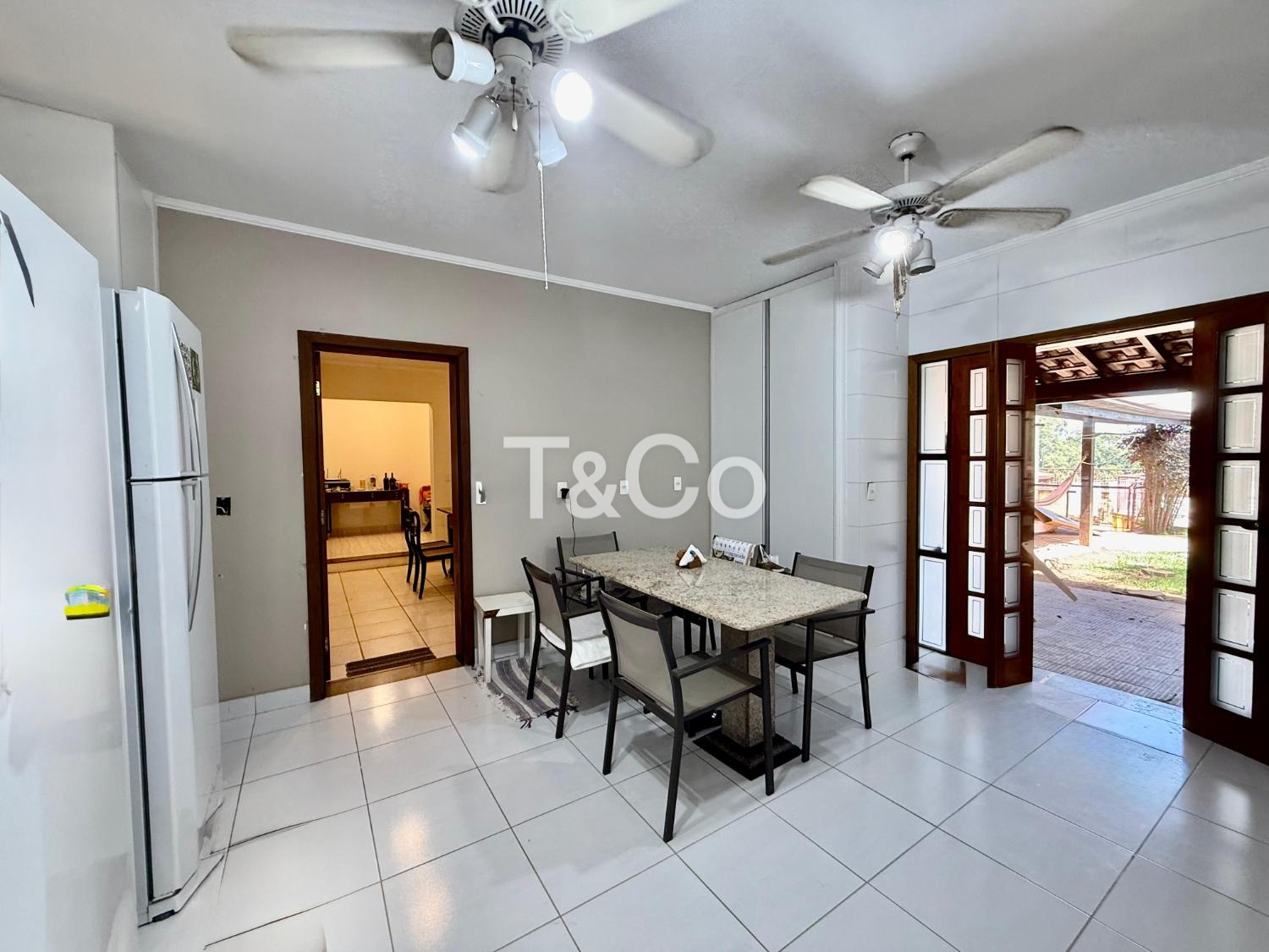 No piso térreo, são 2 suítes, sendo 1 suíte master. Sala com pé-direito alto para 3 ambientes: jantar, estar e TV. Lavabo. Cozinha ampla. Varanda com churrasqueira. Piscina. 2 depósitos.