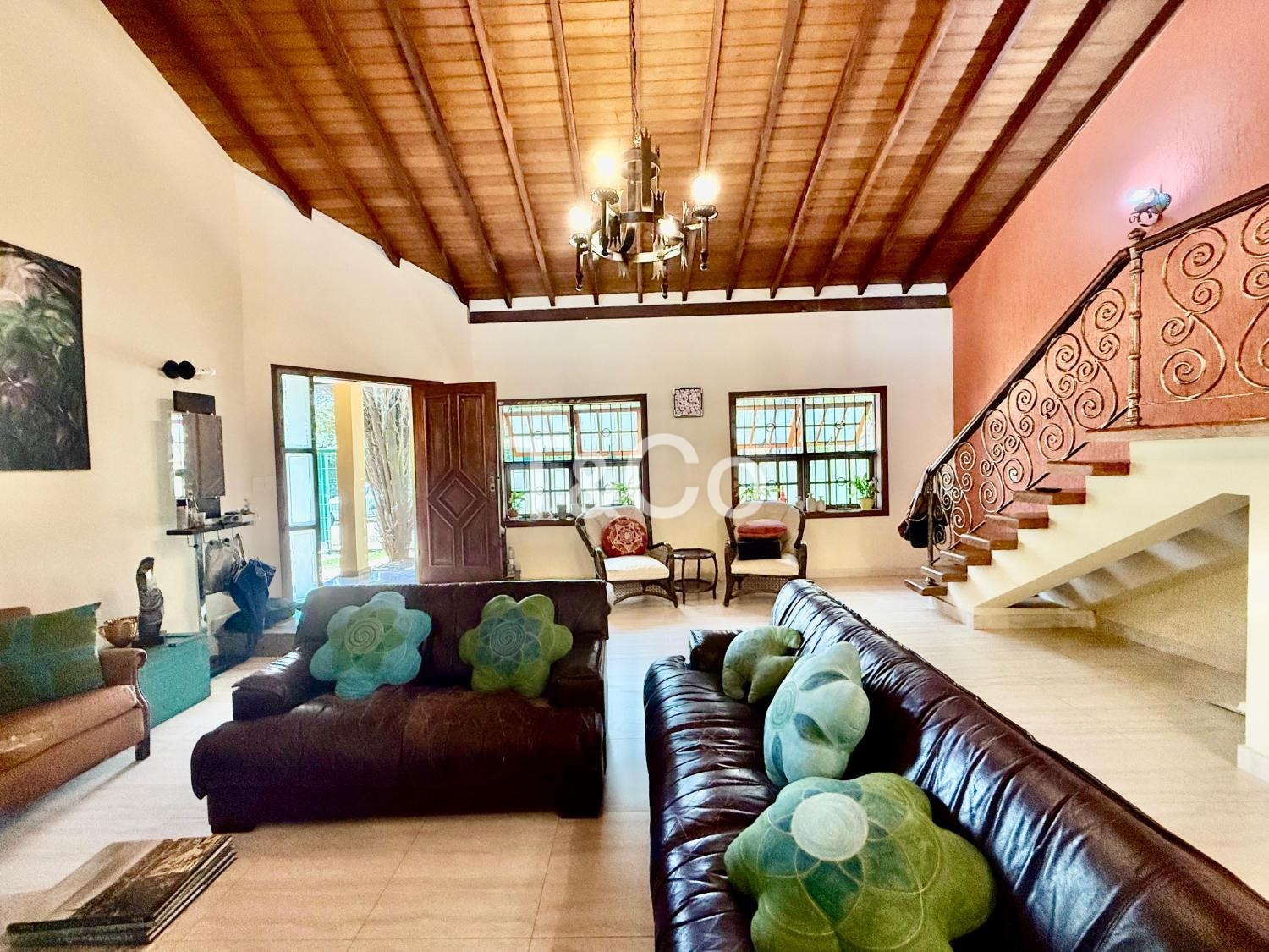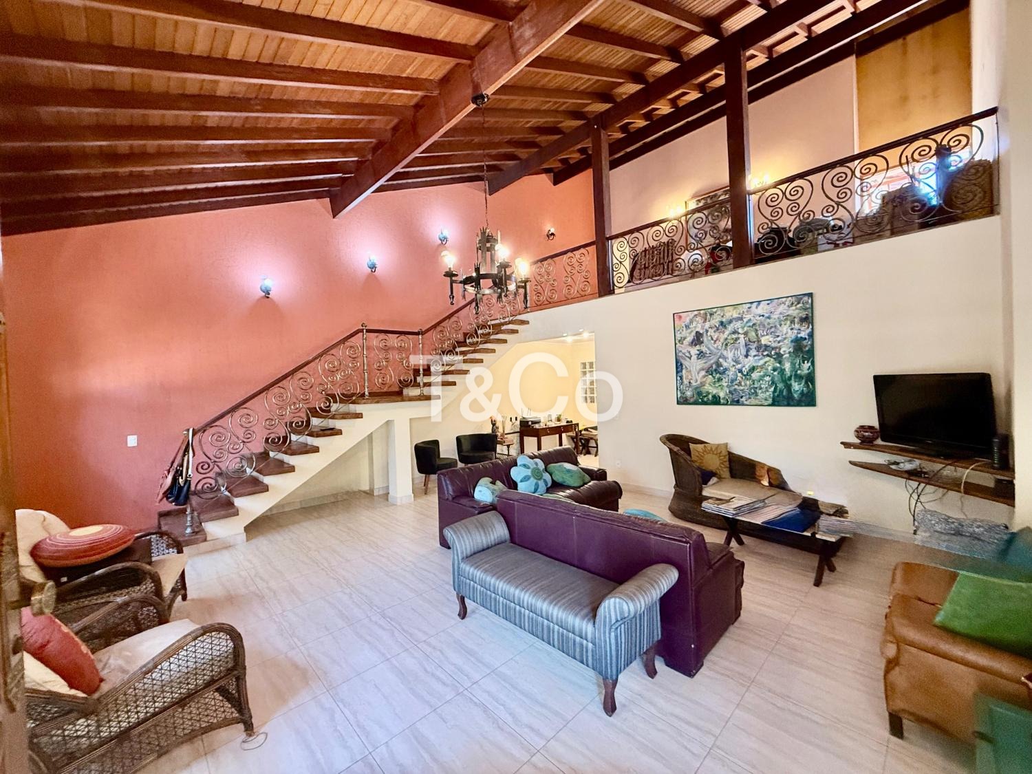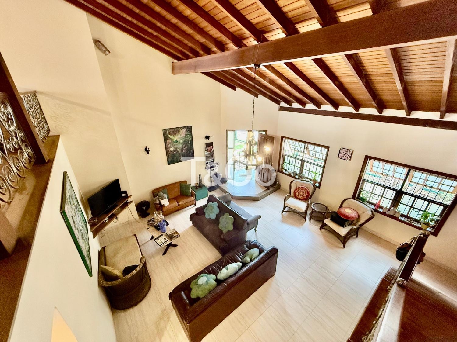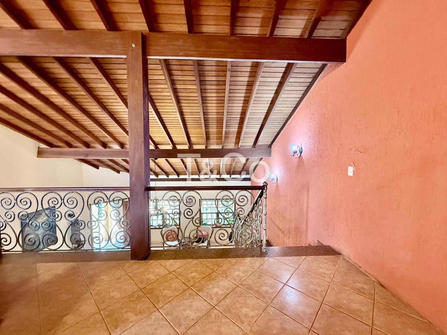 No piso superior, amplo mezanino. 2 suítes. Escritório. Varanda.