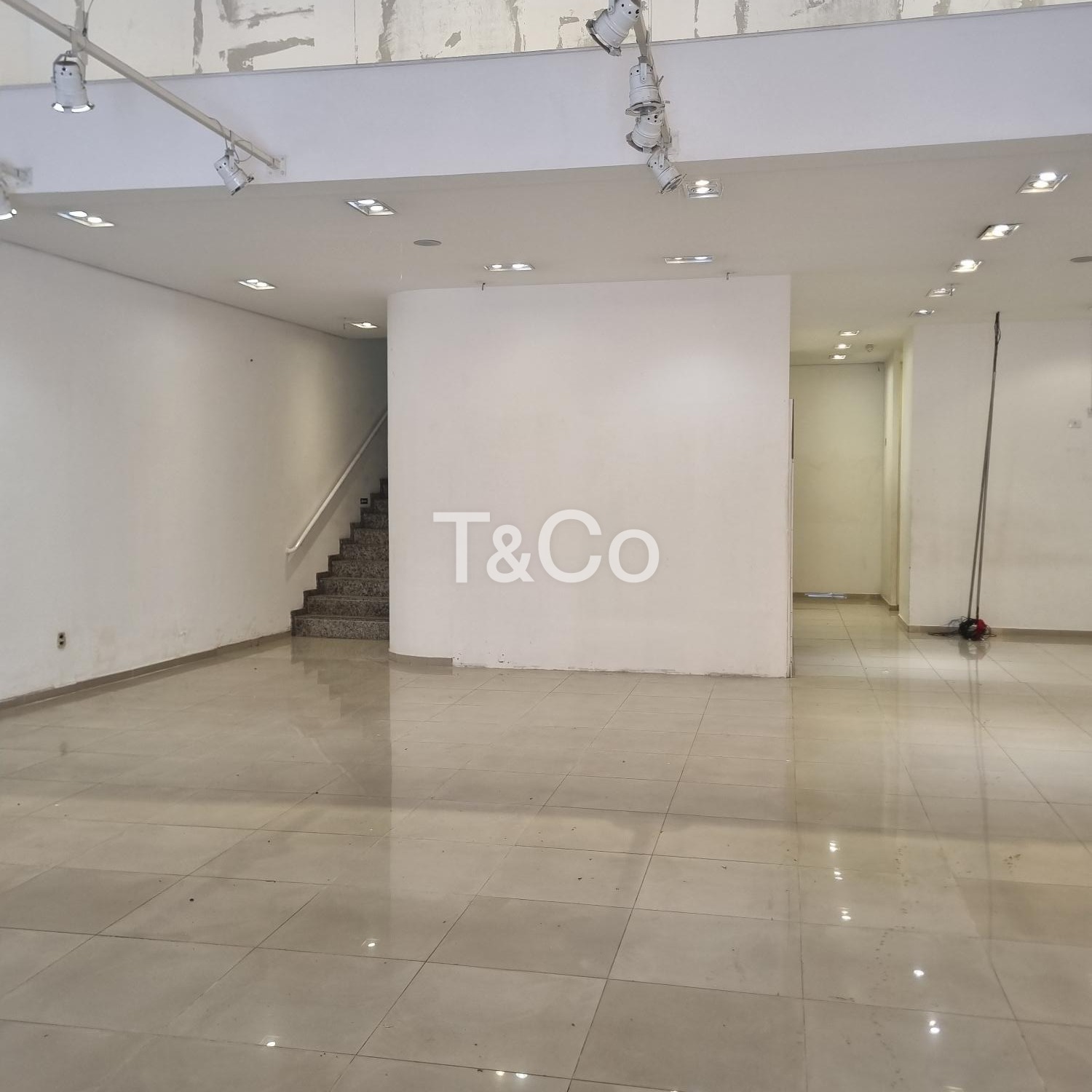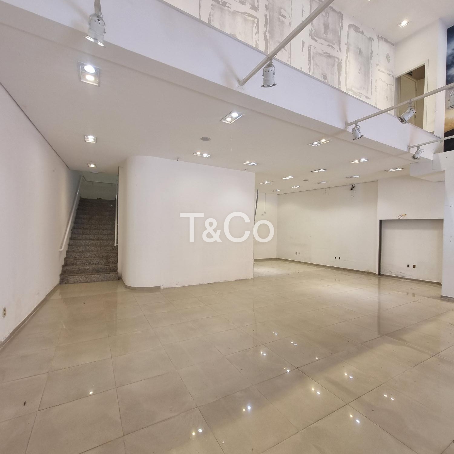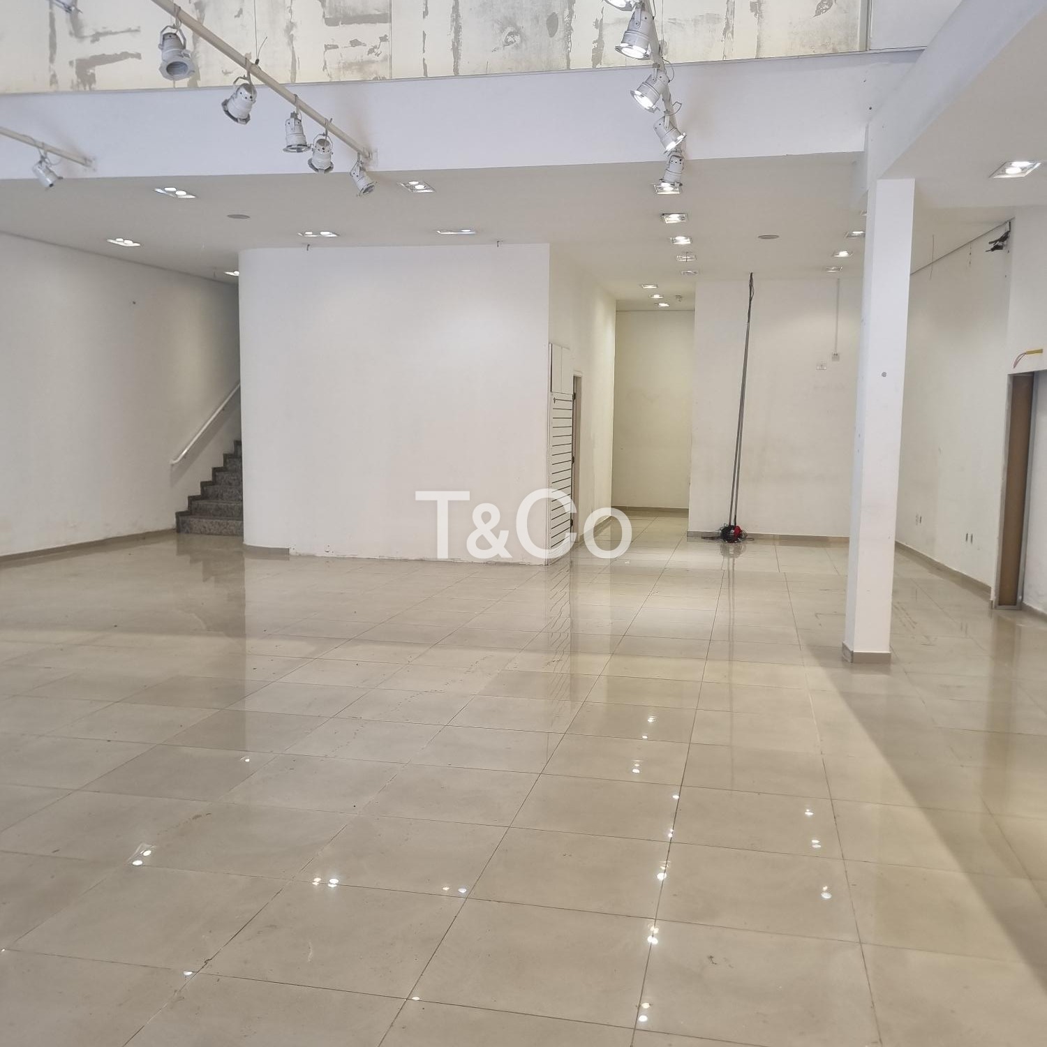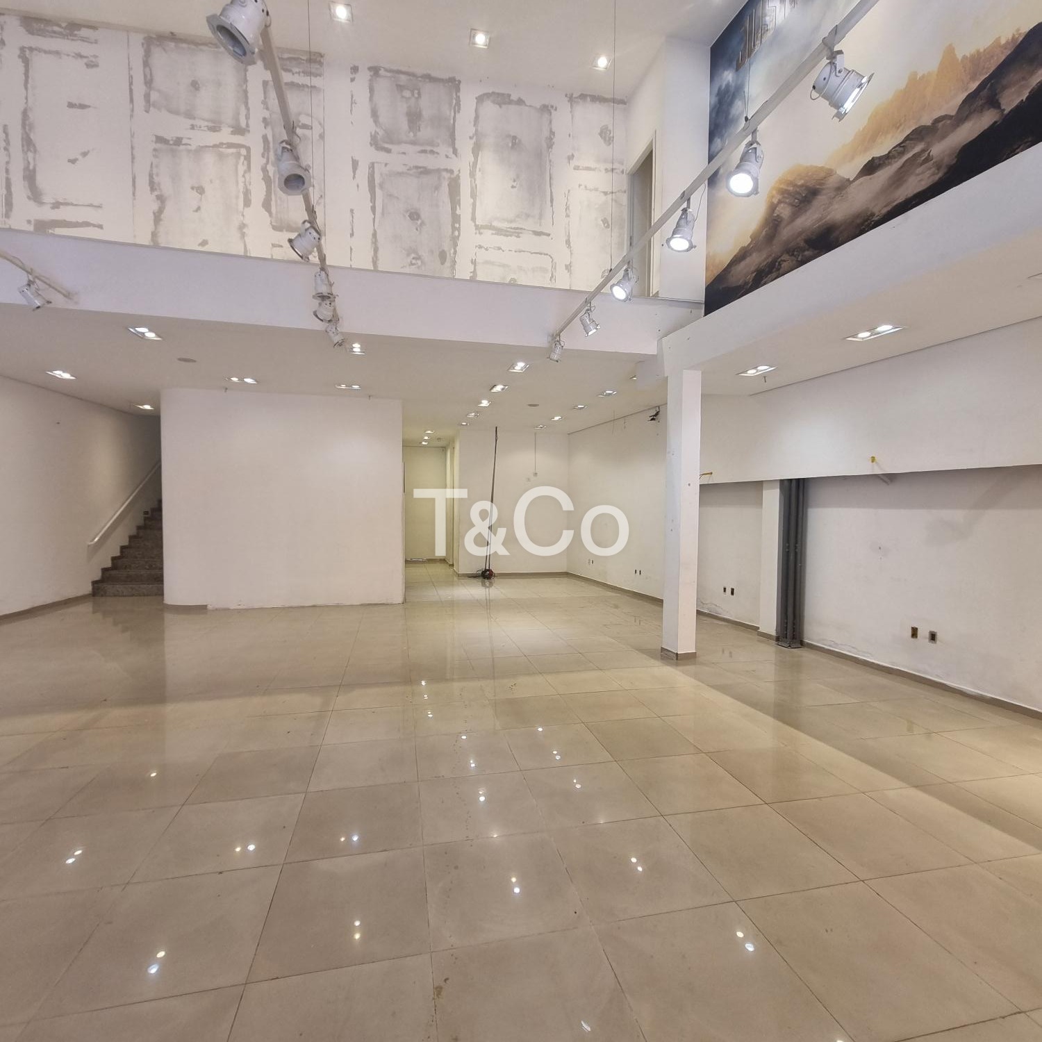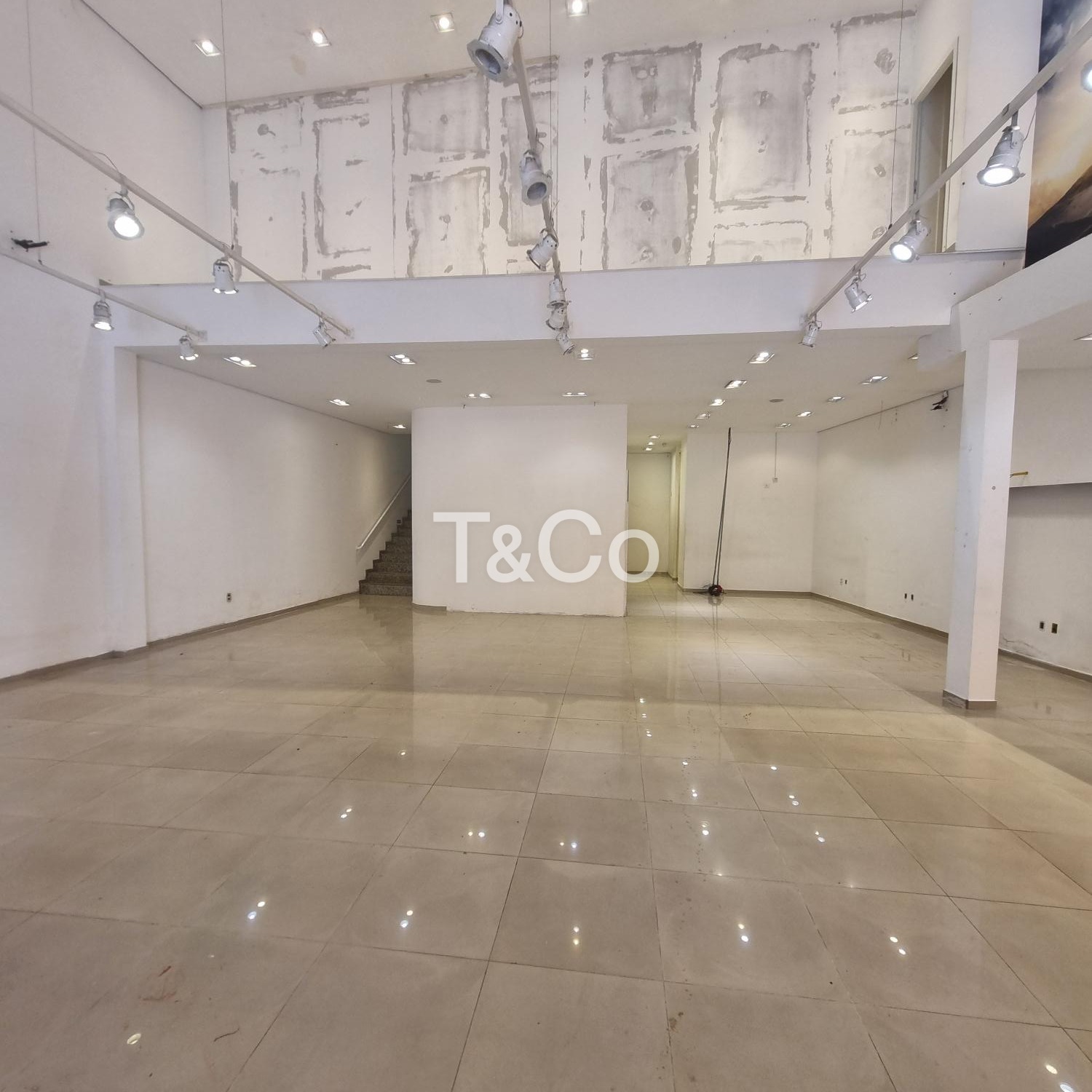 O salão conta com 250 m² no pavimento térreo todo em porcelanato, pé-direito alto que amplia as possibilidades de layout, mezanino de aproximadamente 100 m², iluminação em LED já instalada, banheiros adaptados, copa, corredor lateral nos fundos e quatro vagas frontais de estacionamento.
