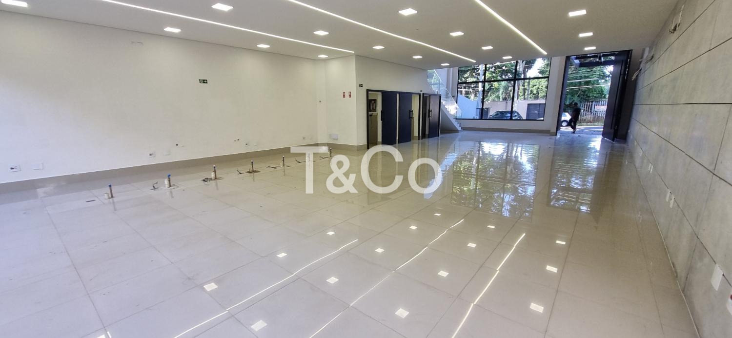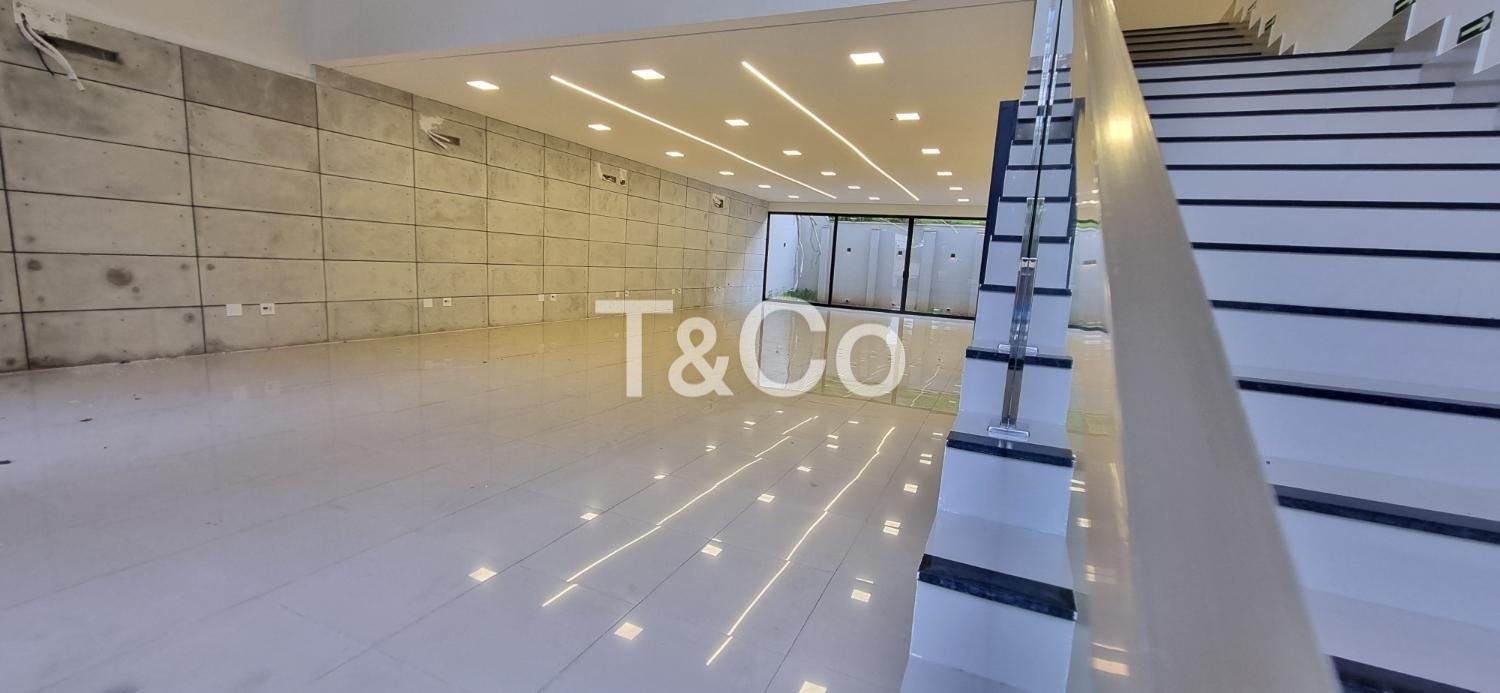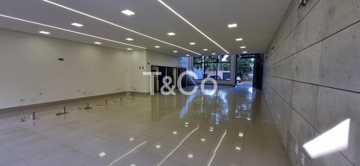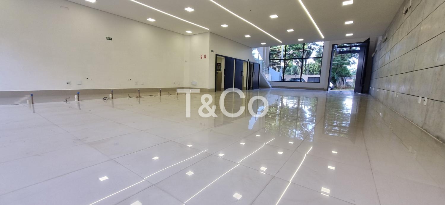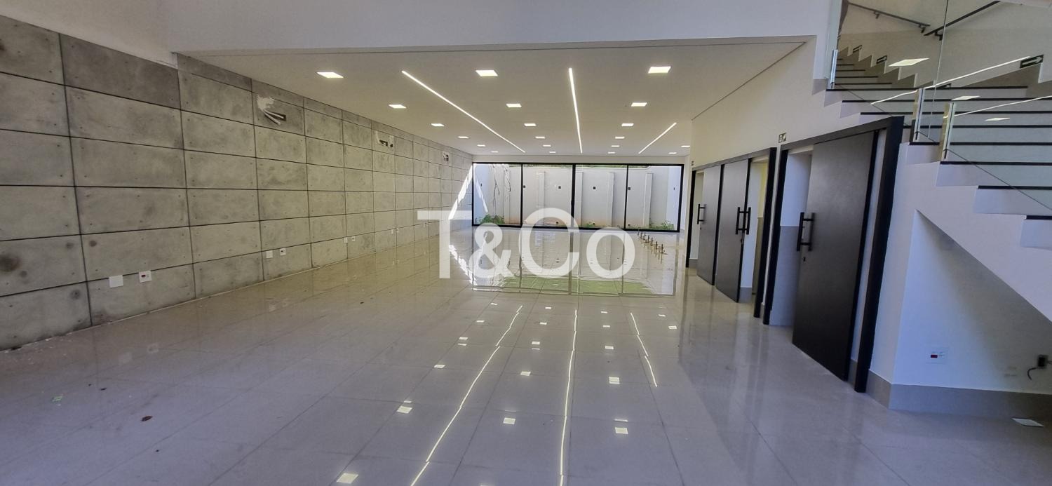 Com 230 m² no pavimento térreo e aproximadamente 120 m² no pavimento superior, o imóvel oferece uma estrutura versátil e de alto padrão. O térreo possui um amplo espaço em vão livre, com porta de entrada imponente em vidro, que garante grande visibilidade, sofisticação e facilidade de acesso para clientes e colaboradores. O piso em porcelanato e o projeto de iluminação já executado proporcionam ambiente moderno, pronto para diferentes tipos de layout.