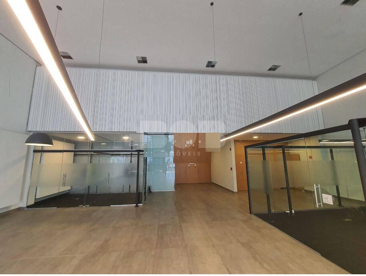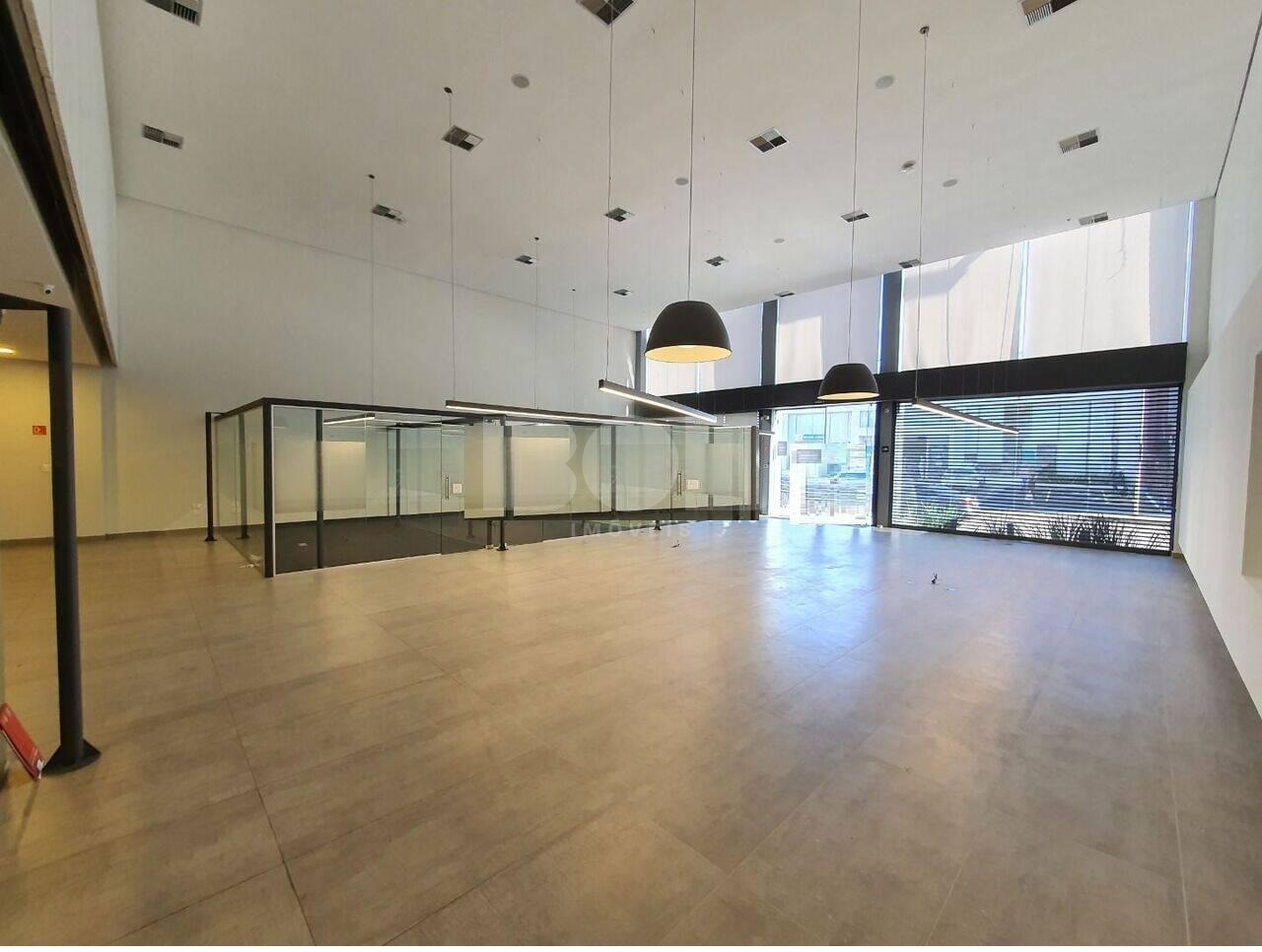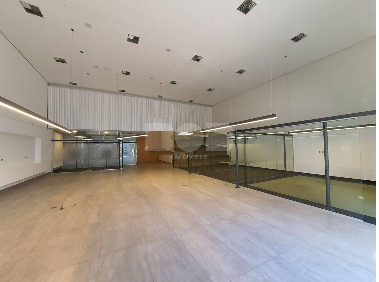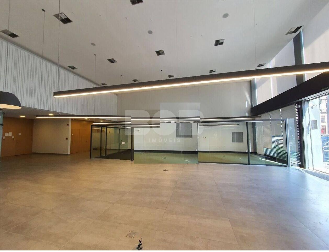 Com uma área total de 300 m² no térreo e um mezanino de 99 m², este espaço se destaca por sua versatilidade e design contemporâneo. A fachada em vidro confere uma presença imponente, enquanto o pé direito duplo cria um ambiente arejado e expansivo.