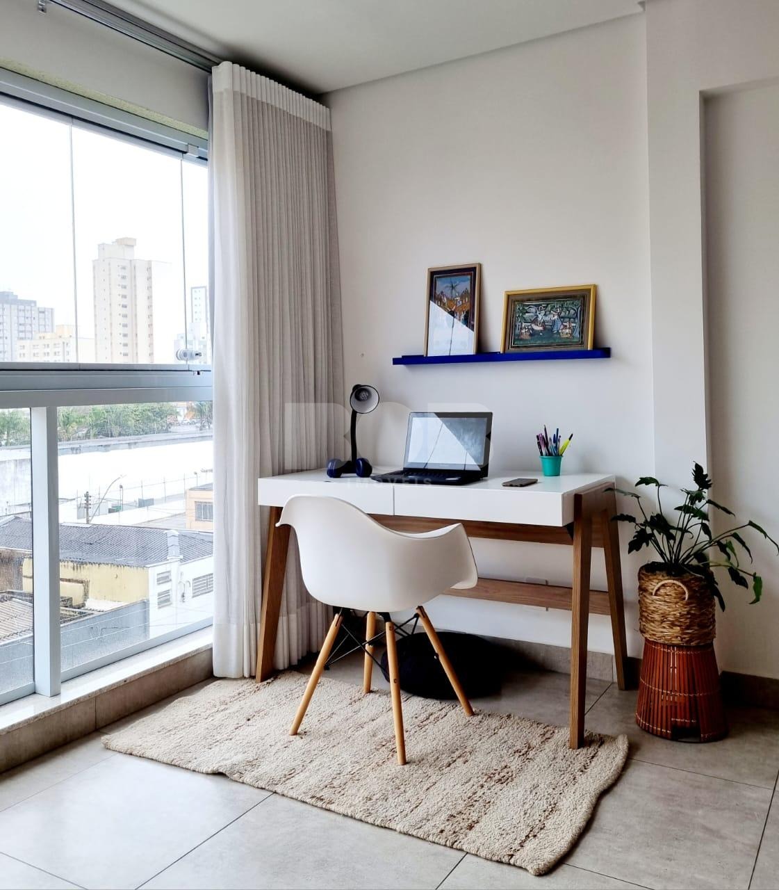 Apartamento com muita marcenaria, varanda fechada com vidro, 1 vaga + armário depósito.